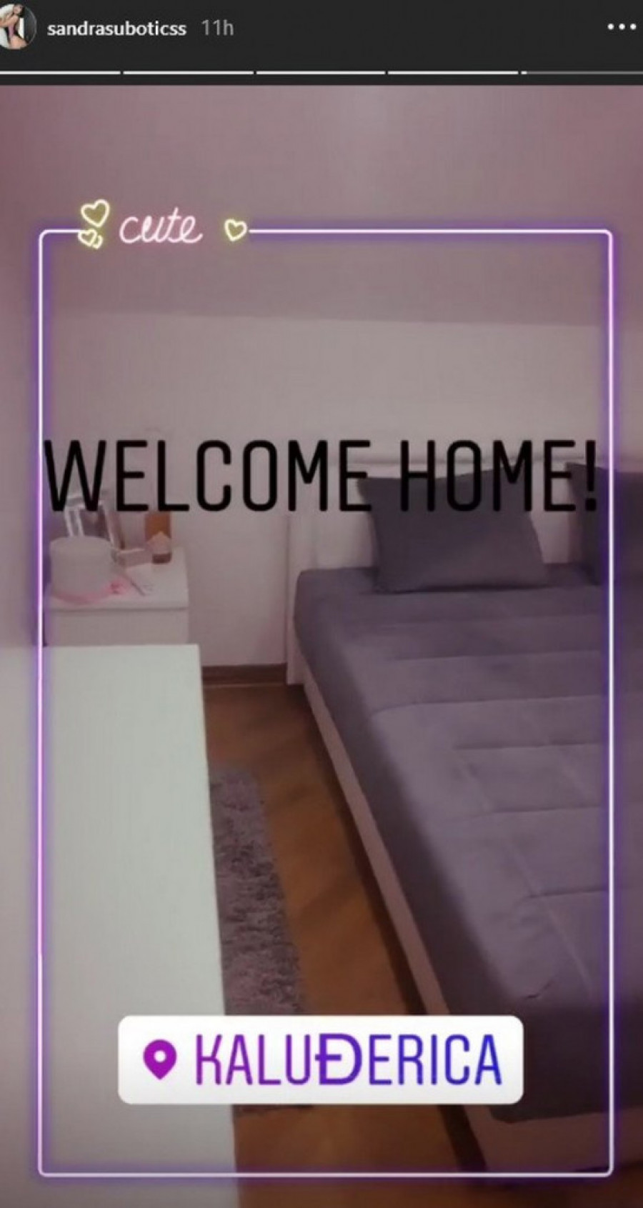 - Dobrodošla kući - napisala je ona, označivši da se sada nalazi u Kaluđerici.