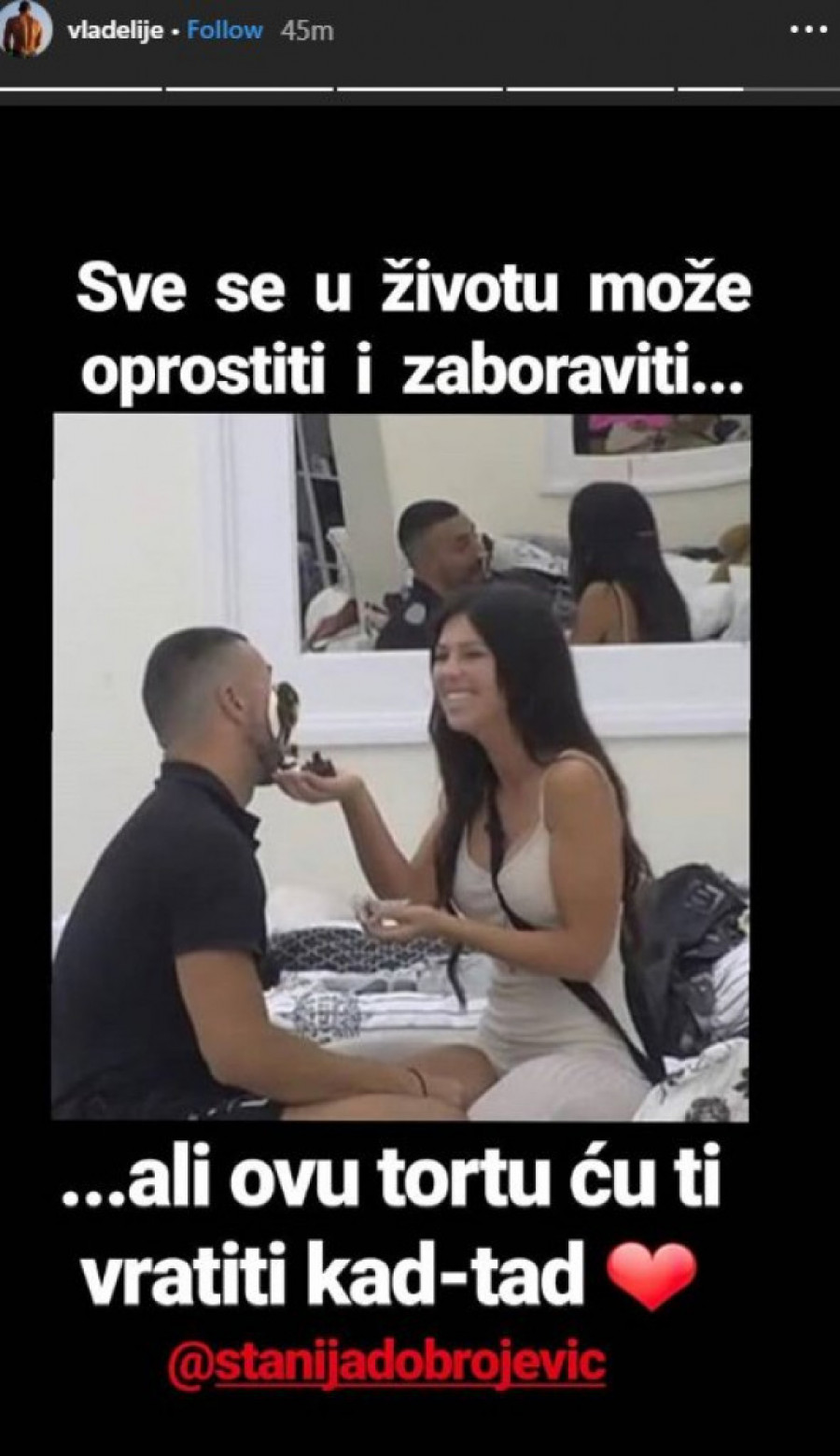 - Sve se u životu može oprostiti i zaboraviti, ali ovu tortu ću ti vratiti kad-tad - napisao je Tomović i dodao srce.
