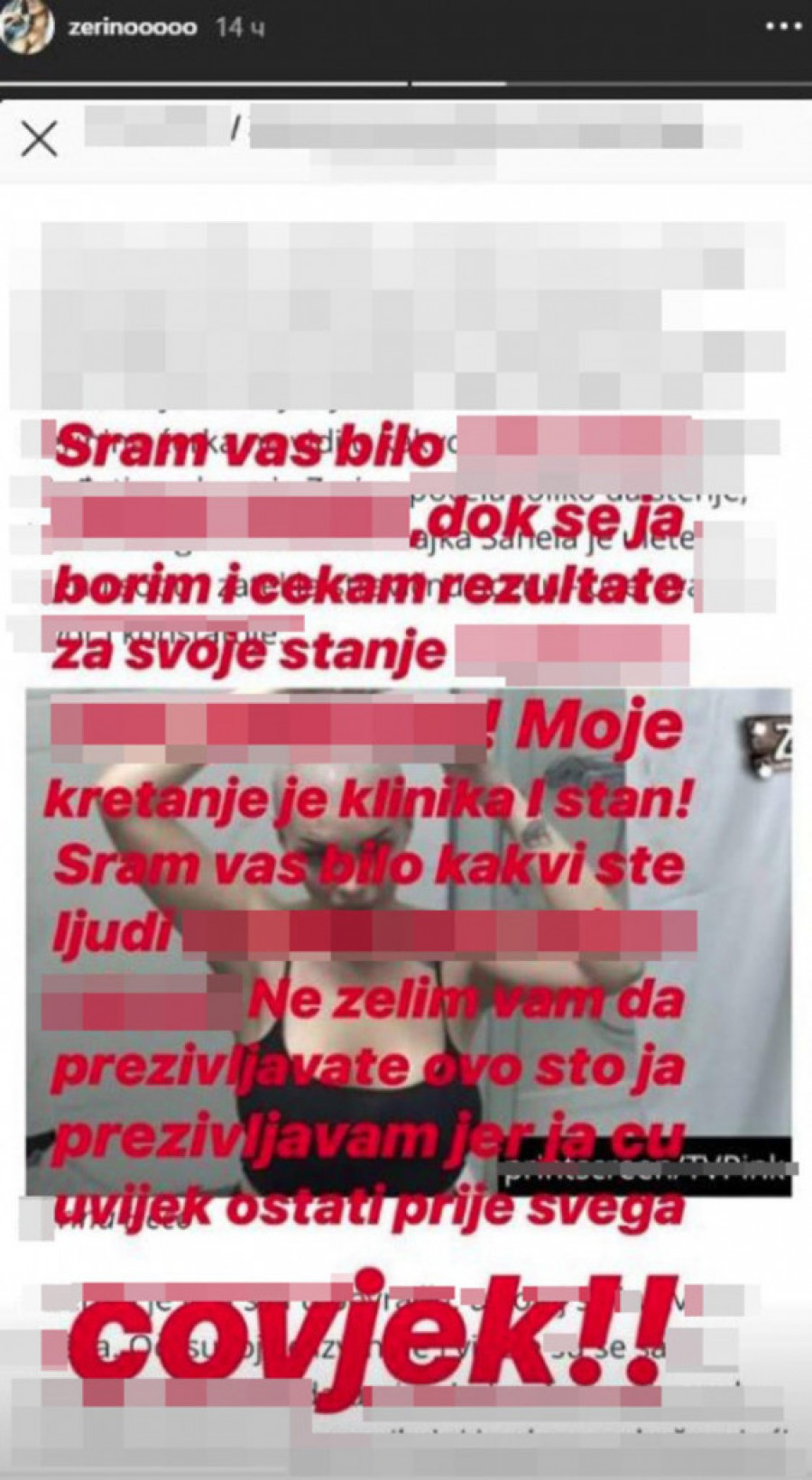 Zerina je sada otkrila da ponovo ima probleme s teškom bolešću, kao i da čeka lekarske rezultate. Hećeova, koju mnogi kritikuju, obratila im se porukom: