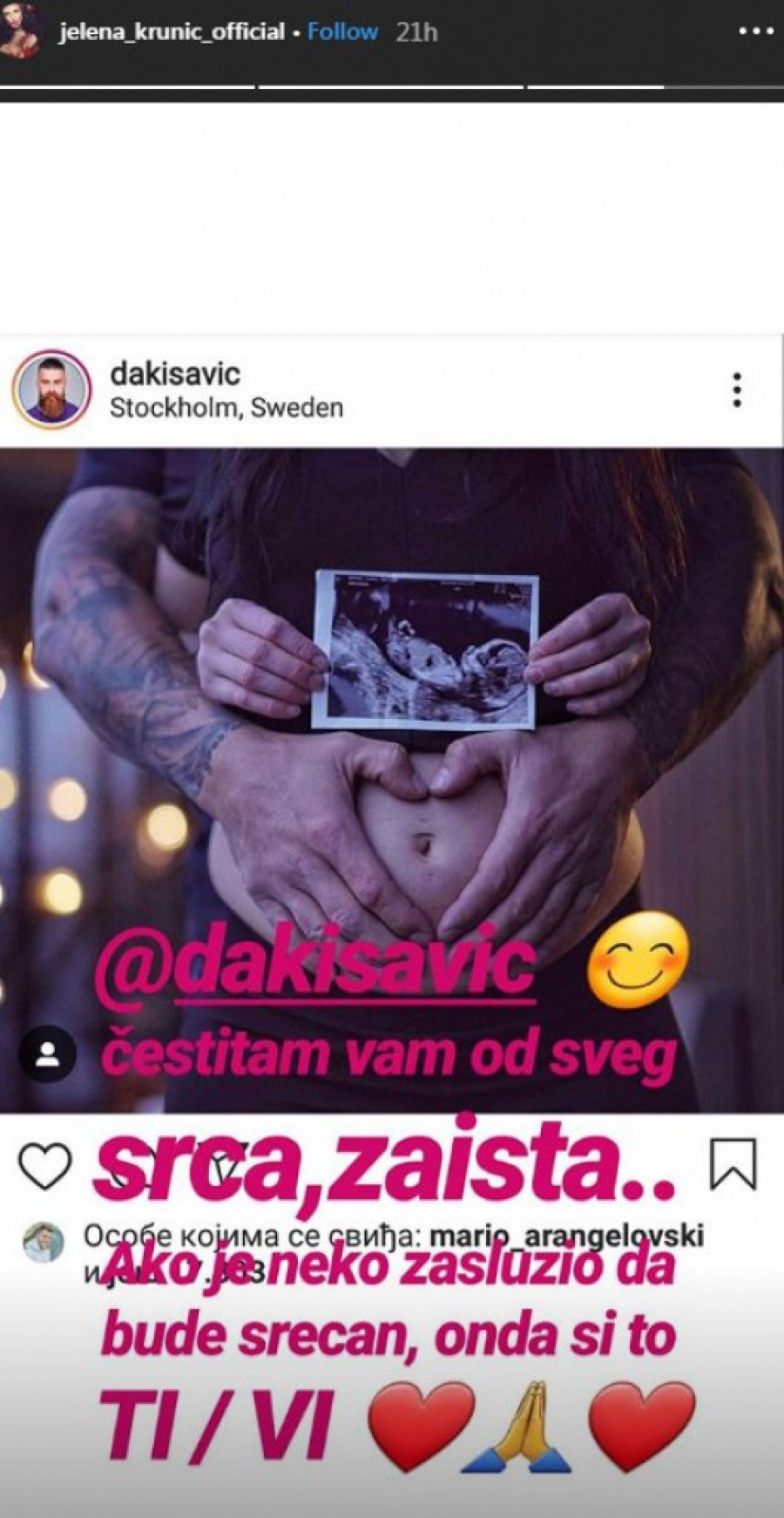 Jelena je u objavi čestitala na trudnoći budućim roditeljima i poželela im sreću. Uz to je stavila i emotikone srca. Da li je ovo bila iskrena čestitka ili neka vrsta provokacije i skretanja pažnje na sebe, ostaje da vidimo.