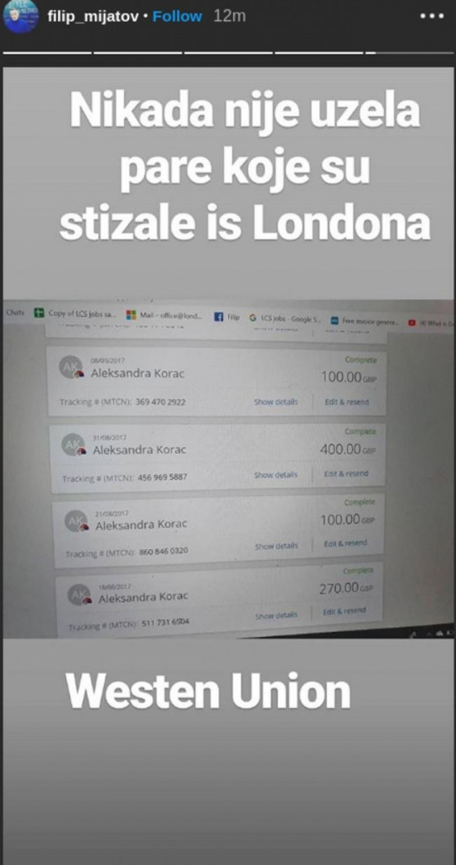 Foto: youtube.com/printscreenFilip je potom otkrio da joj je slao novac kada nije bio u Srbiji, a na pitanje koji je razlog zbog kog je Koraćeva zaslužila toliku svotu novca, Mijatov je poslao i dokaz koji potvrđuje njegovu priču.