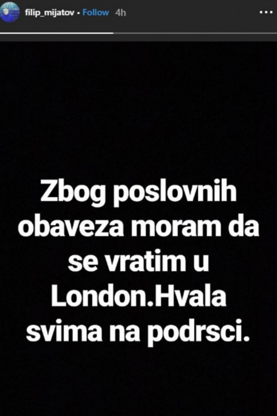 - Zbog poslovnih obaveza moram da se vratim u London. Hvala svima na podršci - napisao je on na Instagramu.