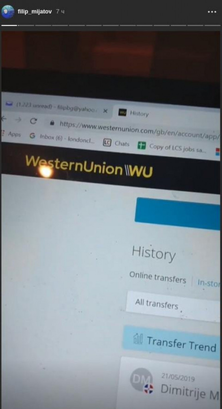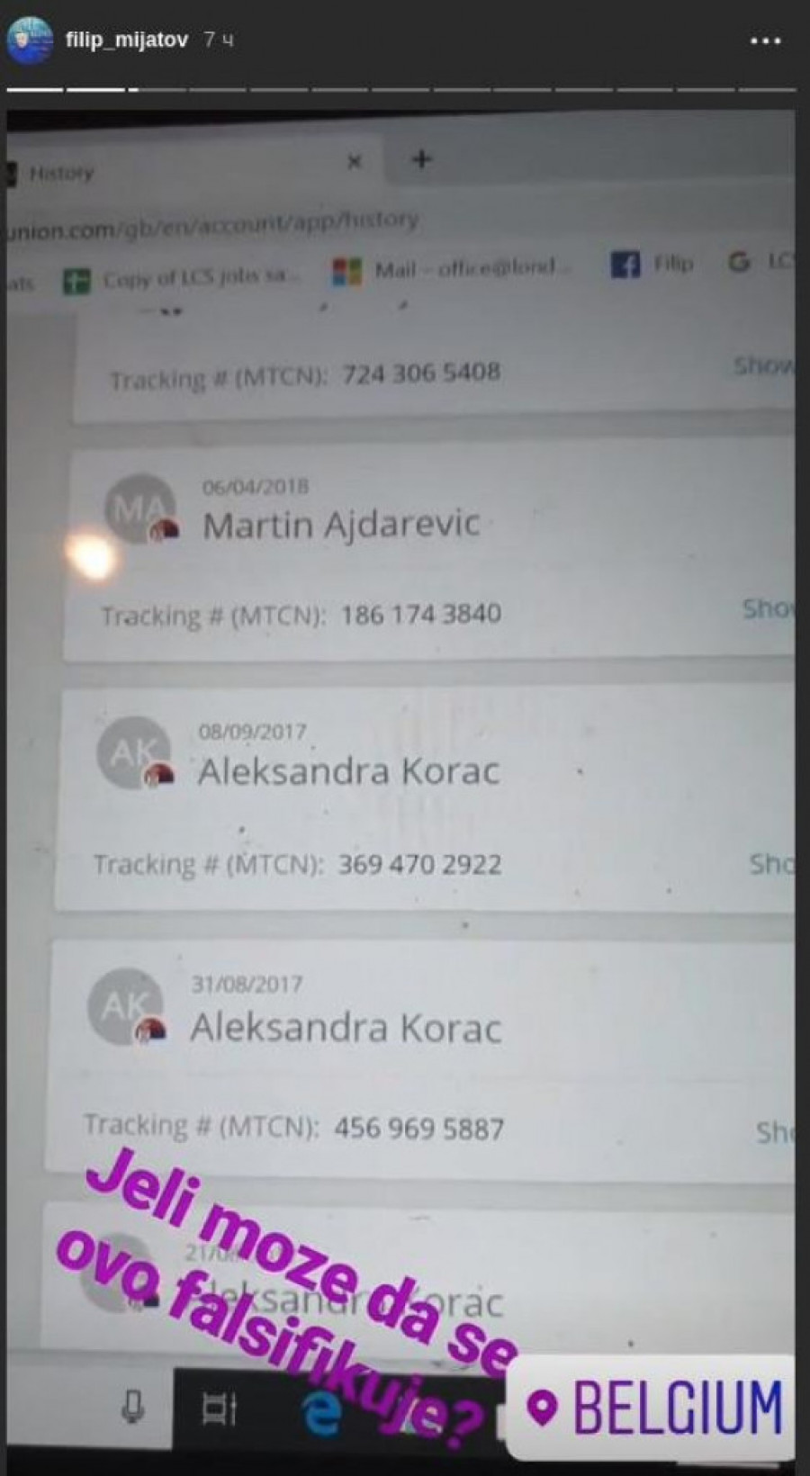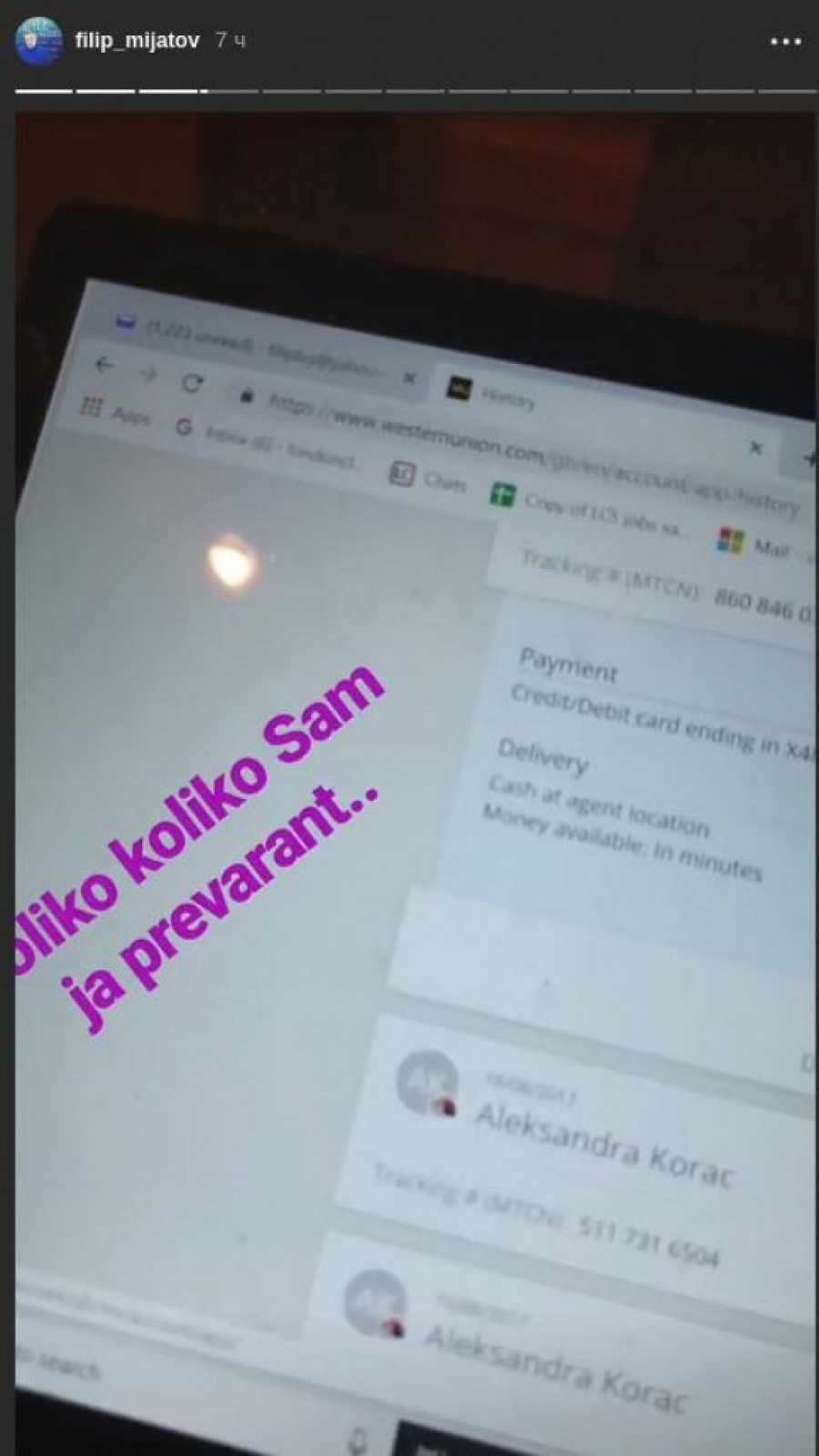 Foto: instagram.com/filip_mijatovVidevši ovo, Filip je brzo reagovao i ovoga puta objavio video na Instagram storiju na kojem je snimao ekran dok je ulazio u svoj Western union nalog, prikazujući ono što je ranije već obelodanio, samo ovoga puta još detaljnije.