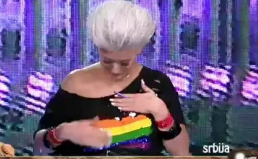 Foto: printscreen/TVPinkNa majici koju nosi pisalo je 'Love' (Ljubav) , a kada je rukom prešla preko majice na istoj se pojavila zastava u duginim bojama, što je simbol LGBT populacije. Nakon toga je uputila jaku poruku svima.