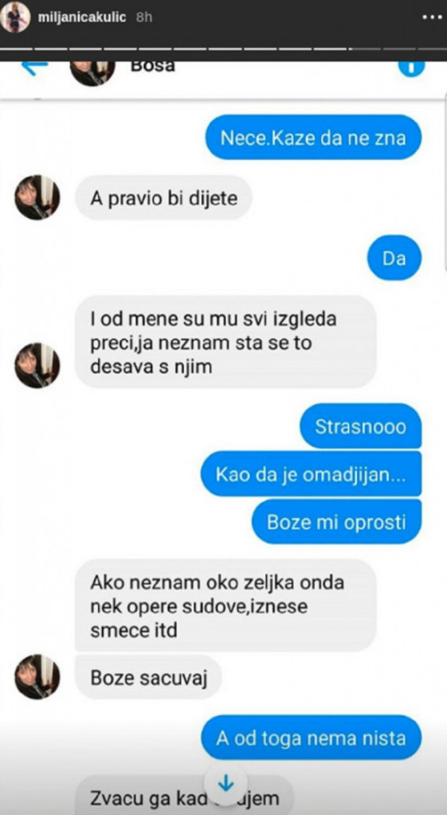 Sad nikome ništa nije jasno: Objavljene poruke koje su razmenjivale Miljana i Zolina majka!