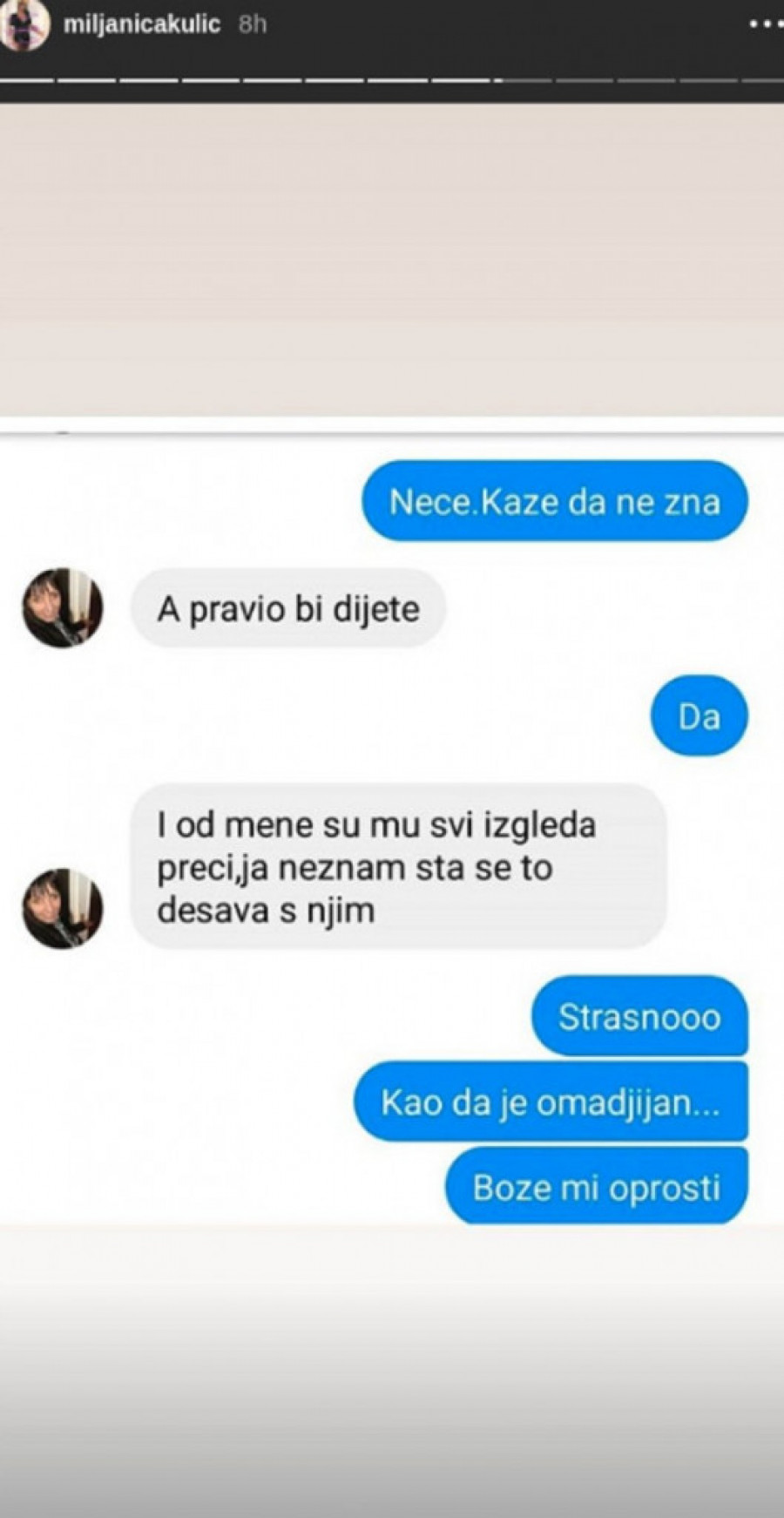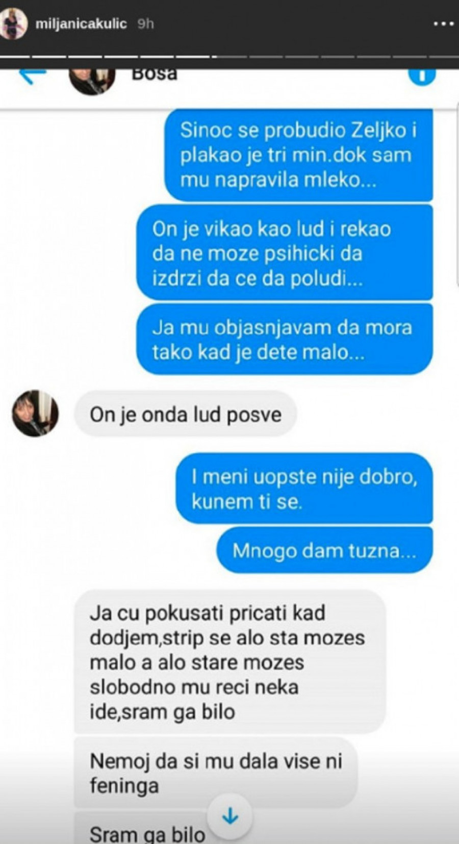 Ovaj put je na svom Instagramu objavila prepisku sa Zolinom majkom, gde se jasno vidi da je i ona bila i te kako zabrinuta za njegovo ponašanje i pružala podršku Miljani.