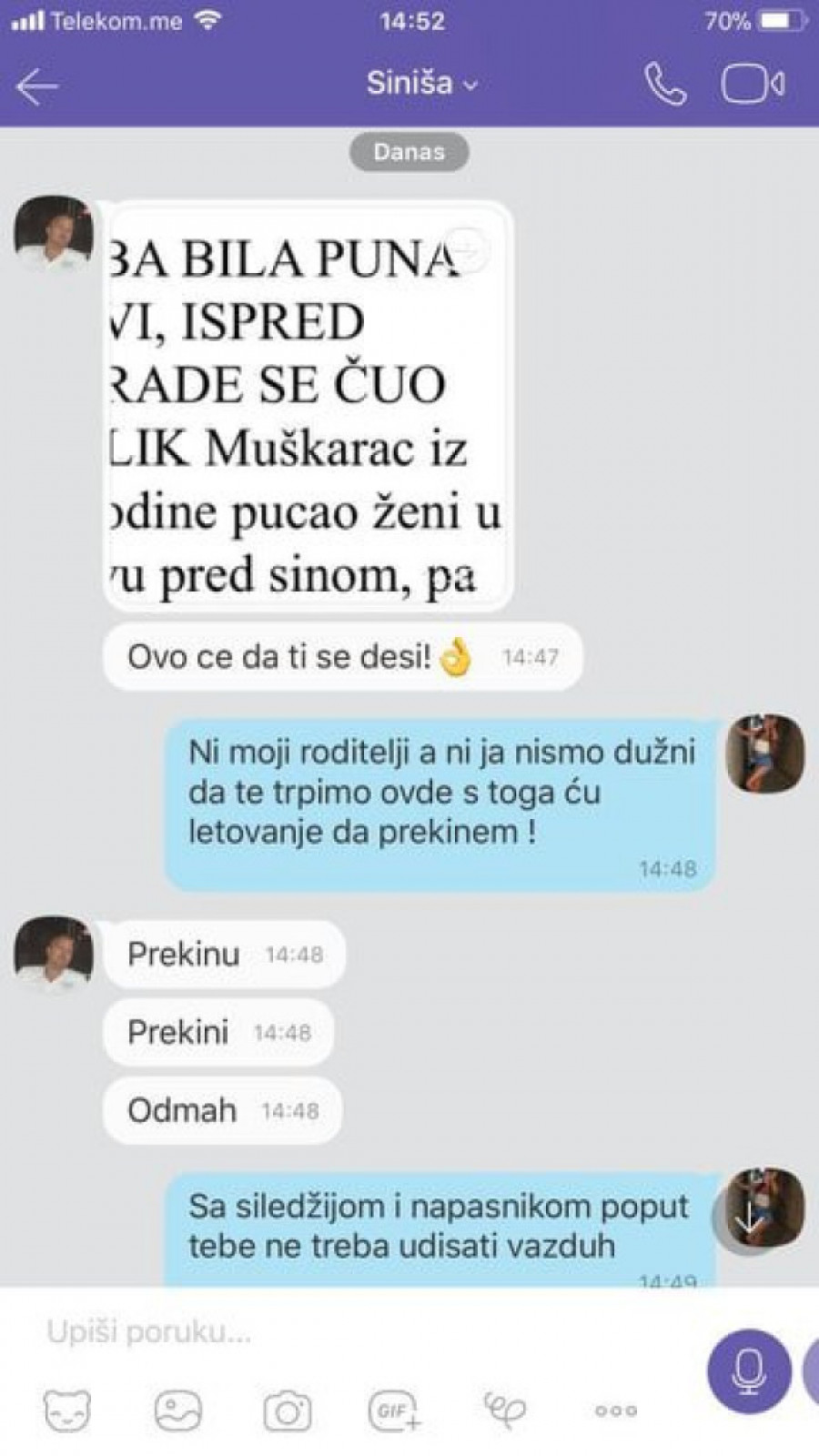 - Pretio je i mojim roditeljima i meni i svima, ja se nadam samo da će institucije reagovati pre nego što se meni bilo šta desi jer mi je obećao da će me ubiti.