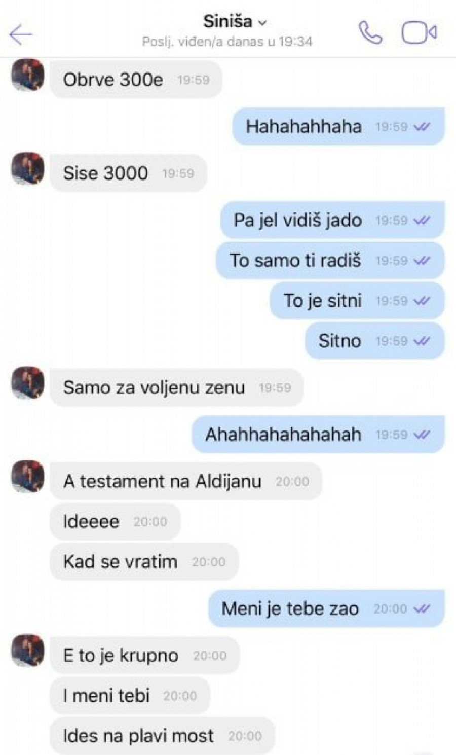 I sok Siniša sve ovo demantuje, ekipa Srpskog Telegrafa do prepiski koje su razmenjivali Siniša i Dragana u kojoj se jasno vidi da joj preti ubistvom. Takođe, pred vama je i tužba koju je podneo Dragutinović.