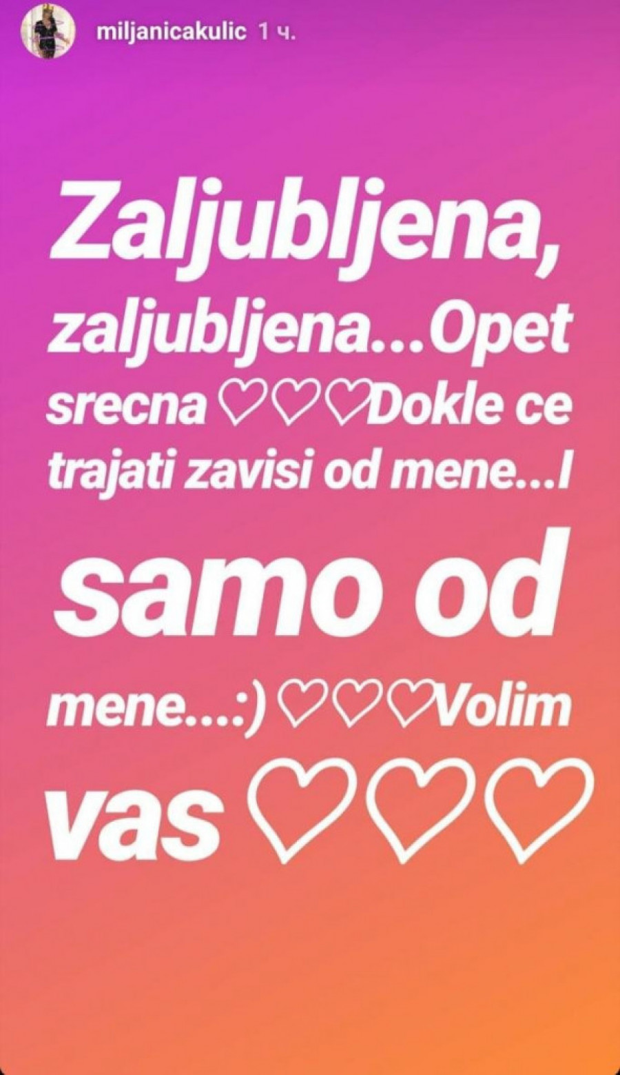 Ipak, izgleda da je Miljana usput pronašla i novu ljubav. Ona je objavila snimak sa momkom koji mnogo liči na onog istog momka koji ju je pratio na klavijaturi kada je pevala pesmu Crno i zlatno, a taj snimak već je postao viralan.