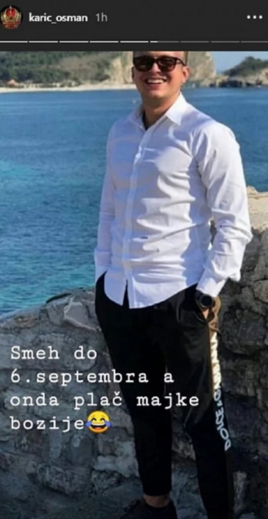 Foto: instagram.com/karic_osmanOsman je napisao da će se Stefan smejati do 6. septembra, a posle toga plakati. Naravno, svi su odmah povezali da je reč o tome da "Zadruga 3" počinje baš tada.