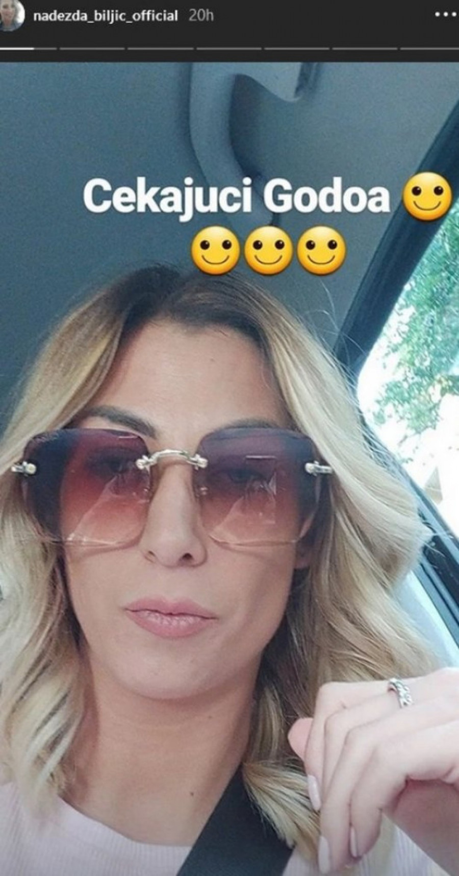 Foto: instagram.com/printscreenPevačica je preko fotografije ispisala "Čekajući Godoa", što je zapravo naziv drame u kojoj glavni junaci čekaju osobu koja se nikada neće pojaviti, te se tako i ona našalila na račun nekoga koga čeka u kolima.