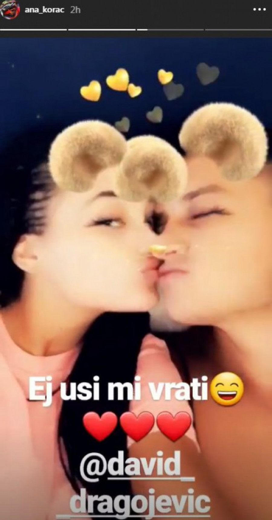 - E, uši mi vrati - nasmejao je David svoju devojku kada mu je "pobegao" filter sa društvene mreže Instagram dok je pokušavao da je poljubi.