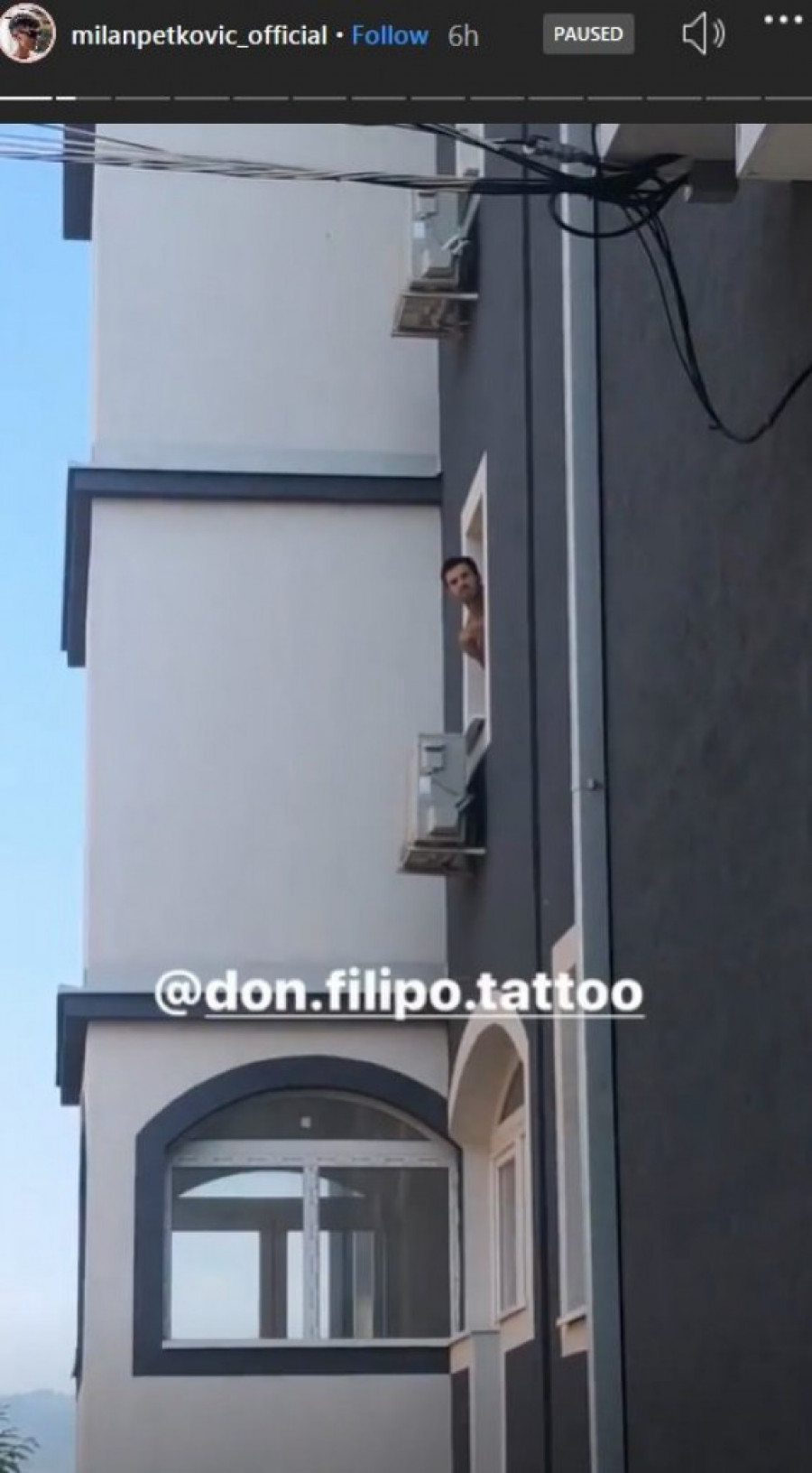 Foto: instagram.com/printscreenPotpuno nag Đukić se pojavio na prozoru i mahao ljudima koji su prolazili.