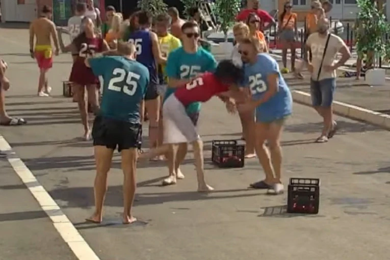 Naime, Tara se pre toga našalila da će ukrasti paradajz, što je on ozbiljno shvatio, a kada je prišao korpi sa paradajzom Tarine ekipe, njih dvoje su imali razmiricu, a on ju je odgurno od sebe jako.
