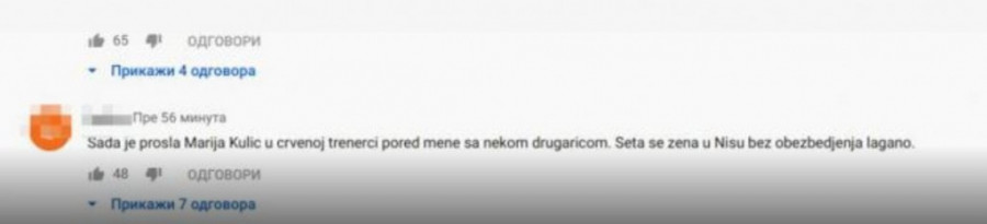 - Sada je prošla Marija Kulić u crvenoj trenerci pored mene sa nekom drugaricom. Šeta se žena u Nišu bez obezbeđenja lagano - šokirao je komentar.