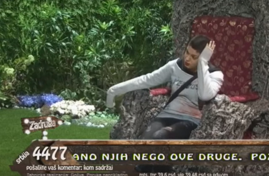 Foto: www.youtube.com/Zadruga OfficialDrvo joj je reklo da ukoliko nije razgovarala sa Đeksonom onda nije pala zadatak, a da će to saznati danas tokom dana.