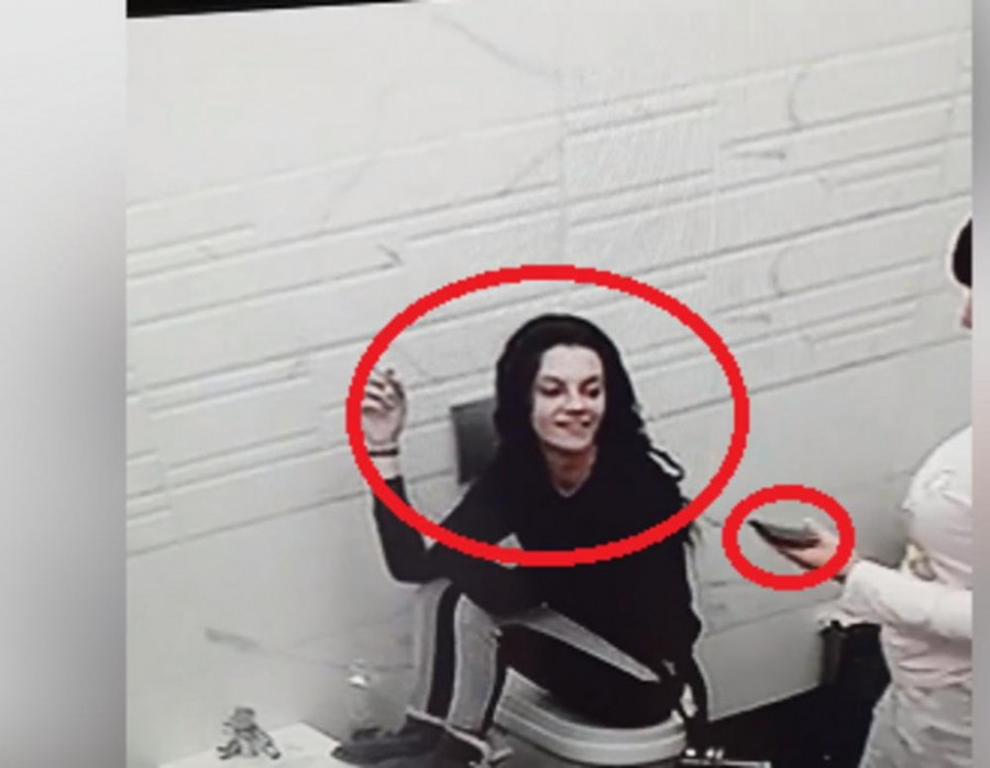 Ona je u ruci držala nešto što podseća na telefon, a u jednom momentu je Tari pokazala na šaku i nasmejala se.