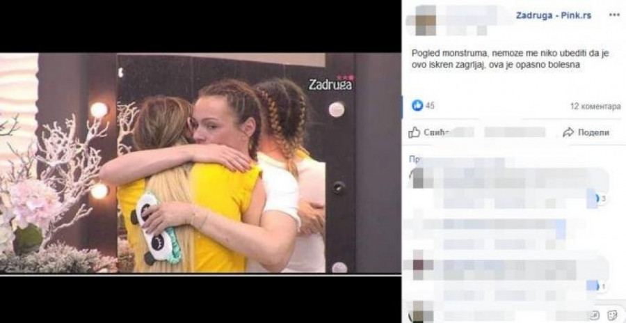 - Pogled monstruma, ne može me niko ubediti da je ovo iskren zagrljaj, ova je opasno bolesna - pisalo je u komentaru fotografije Lune i Anabele, koje se grle.