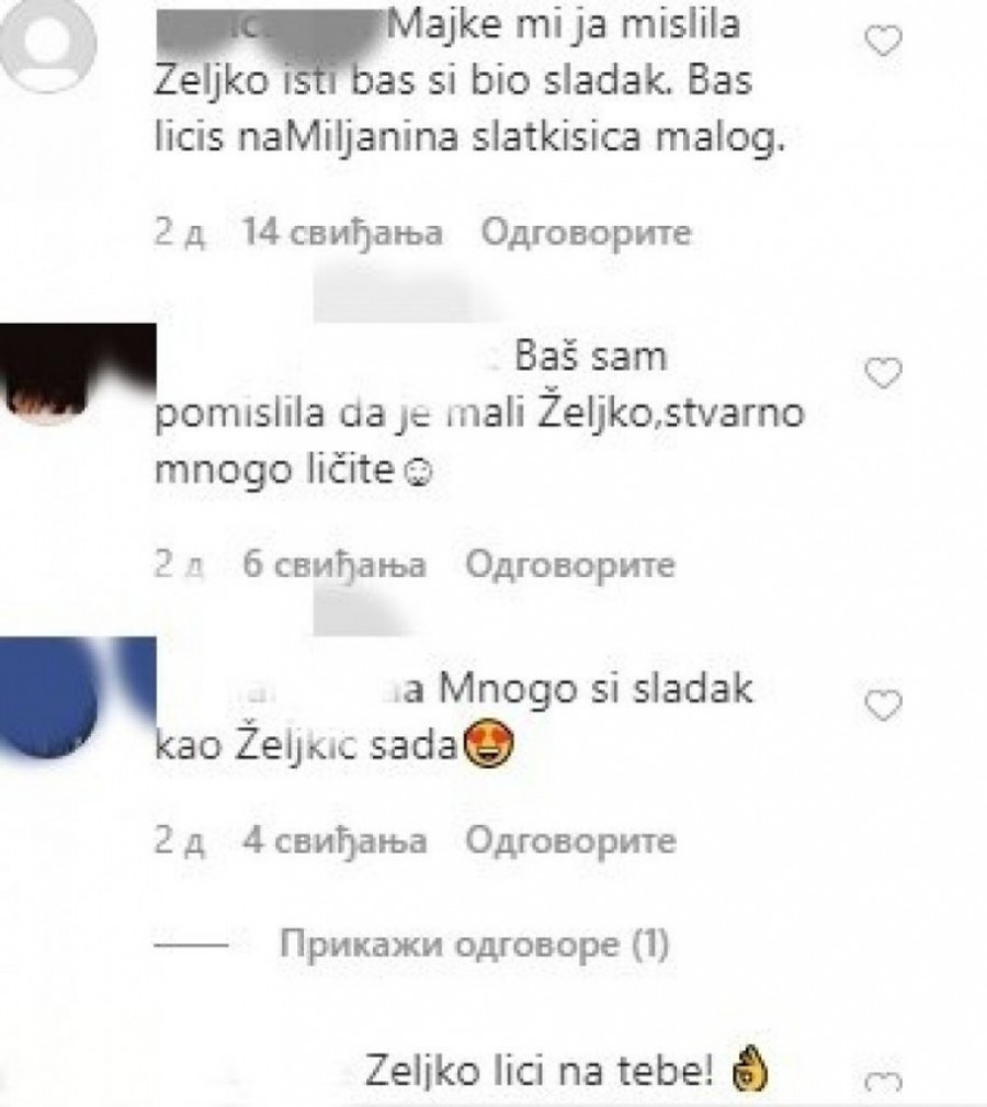 - Majke mi, ja sam mislila Željko. Isti, baš si bio sladak. Baš ličiš na Miljaninog slatkišića malog - glasio je jedan od komentara, a onda su se nizali i ostali: