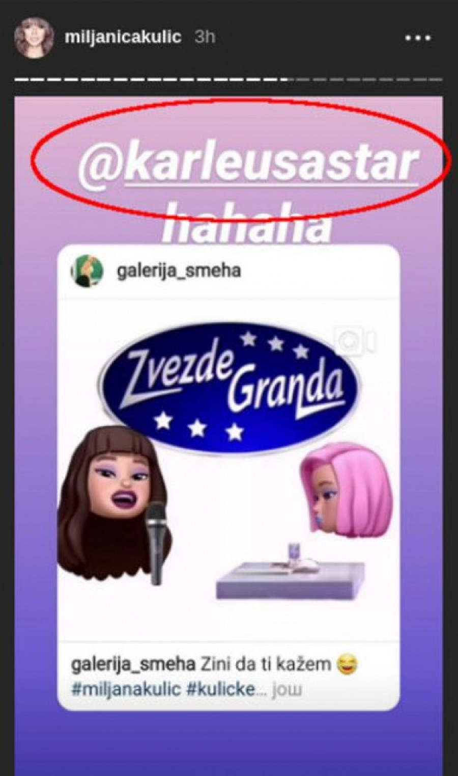 Foto: e-stock/I. DOBRIČIĆOna dane provodi u rodnom Nišu uz sina, a vreme krati i na društvenim mrežama gde komunicira sa pratiocima. Miksi je tako na Instagram storiju poslala poruku pevačici Jeleni Karleuši - tagovala ju je ne bi li videla intersantnu montažu fanova koji su spojili Miljanino pevanje sa komentarom JK iz "Zvezda Granda" i tako napravili smešnu raspravu i prepirku o muzici.