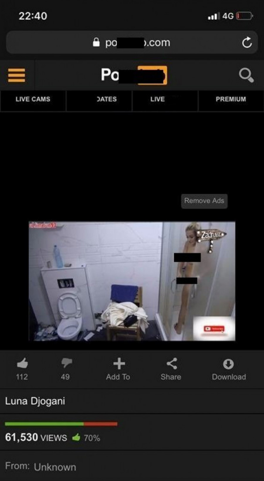 Naime, snimak dok se Lunči kupala potpuno naga pred milionskim auditorijumom, završio je na sajtu za odrasle, što ona verovatno ni ne sluti.