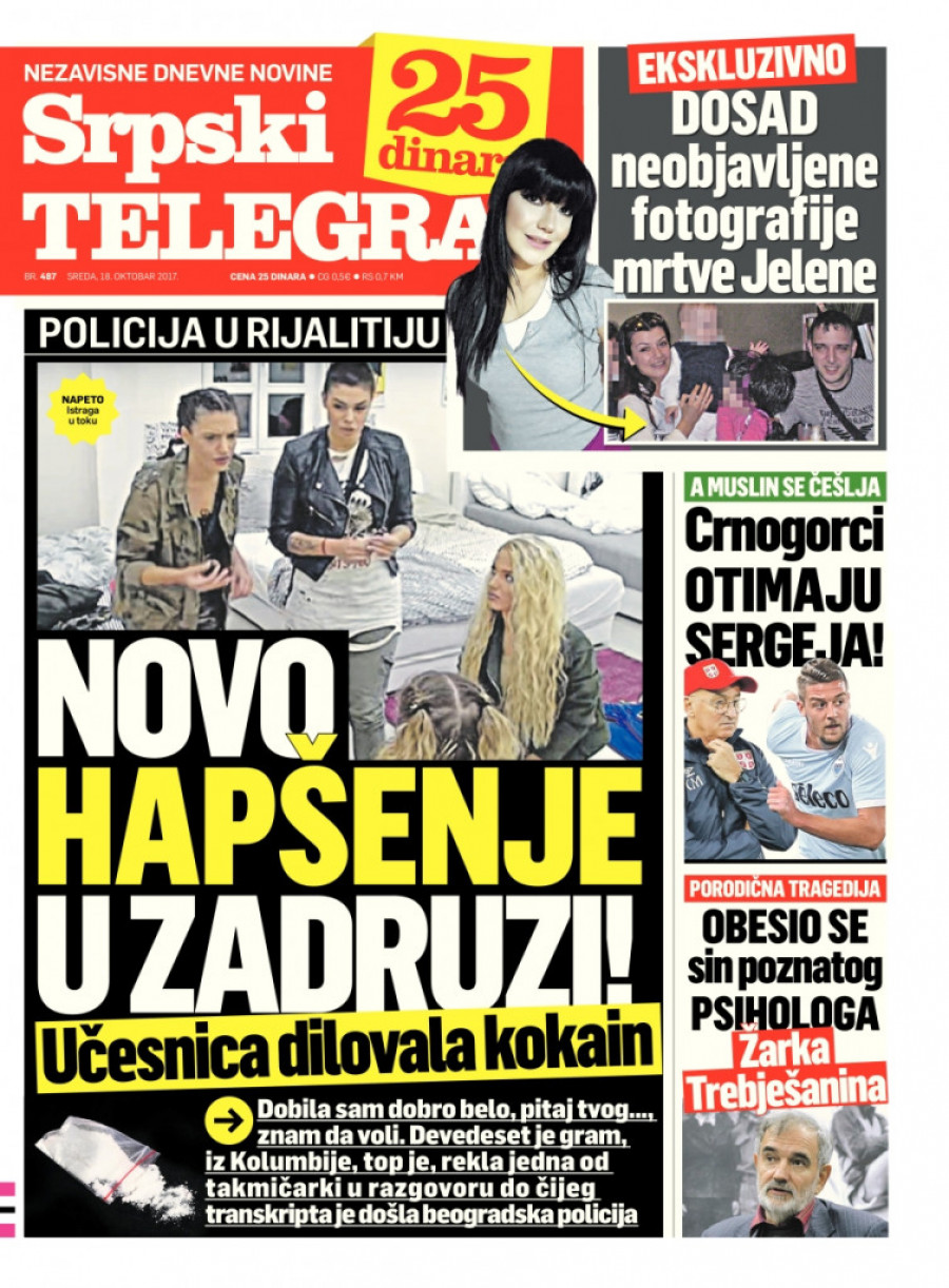 Potvrđeno je pisanje Srpskog telegrafa o učesnici Zadruge koja se bavila prodajom narkotika pre ulaska u rijaliti šou, a sada ekskluzivno možete da čujete i snimak na kojem se jasno čuje da jedna zadrugarka nudi "belo iz Kolumbije, 90 evra gram"!
