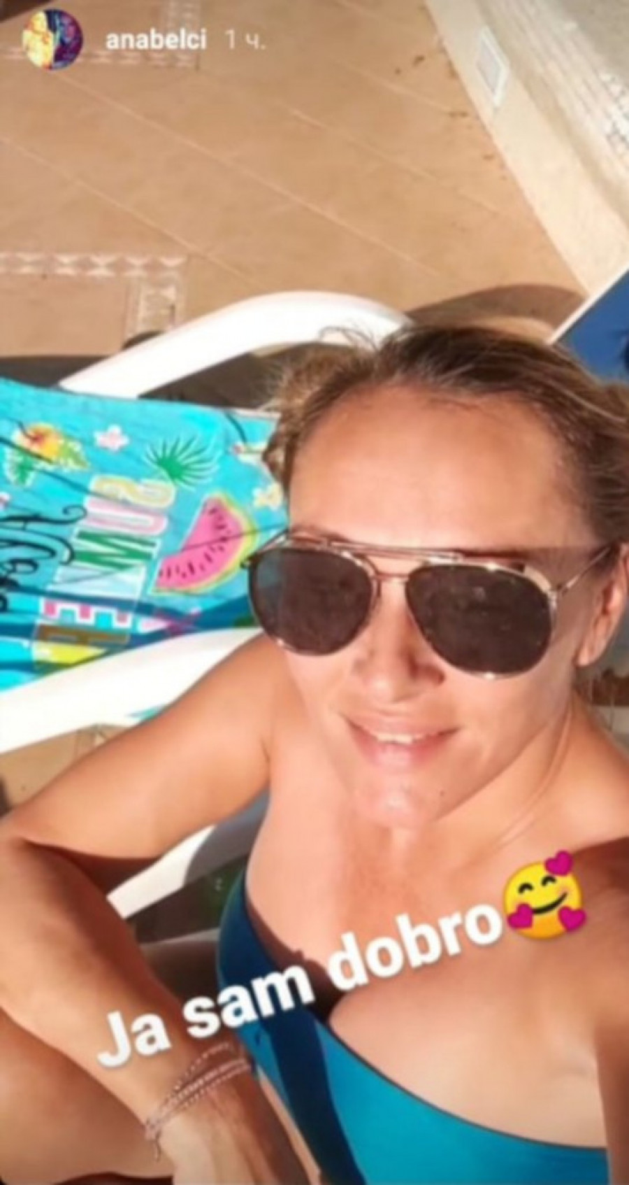 Anabela je objavila kratak snimak sa letovanja, a ostavila je i komentar "Ja sam dobro", a zatim i nekoliko fotografija, sa suprugom Andrejom i ćerkama Ninom i Blanki.