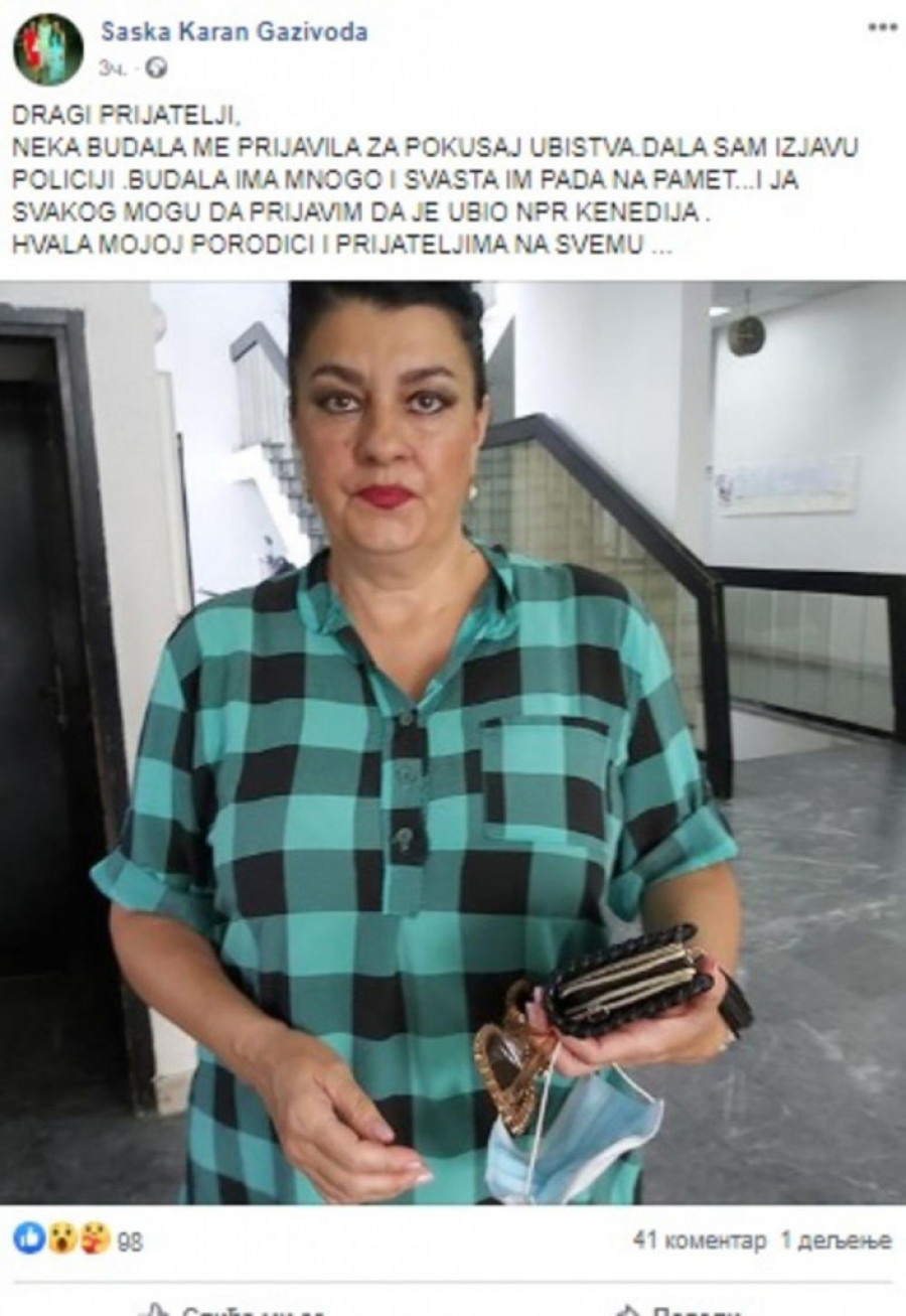 Naime, ona je obavestila sve da je prijavljena za pokušaj ubistva, zbog čega je davala izjavu u policijskoj stanici. Saška je na svom Fejsbuk nalogu napisala sledeće: