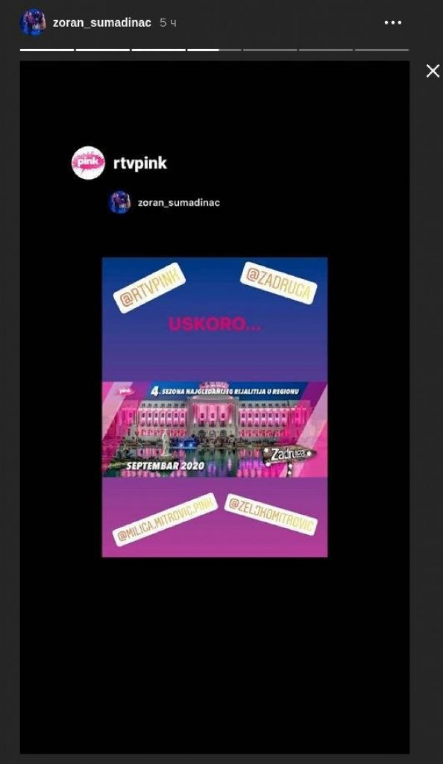 - Uskoro Zadruga - pisalo je u objavi Šumadinca, a ono što je interesantno je detalj da je njegovu najavu iskopirao i Pink. Da li je to potvrda da Zoki ulazi u rijaliti ili ne, ostaje nam da saznamo...