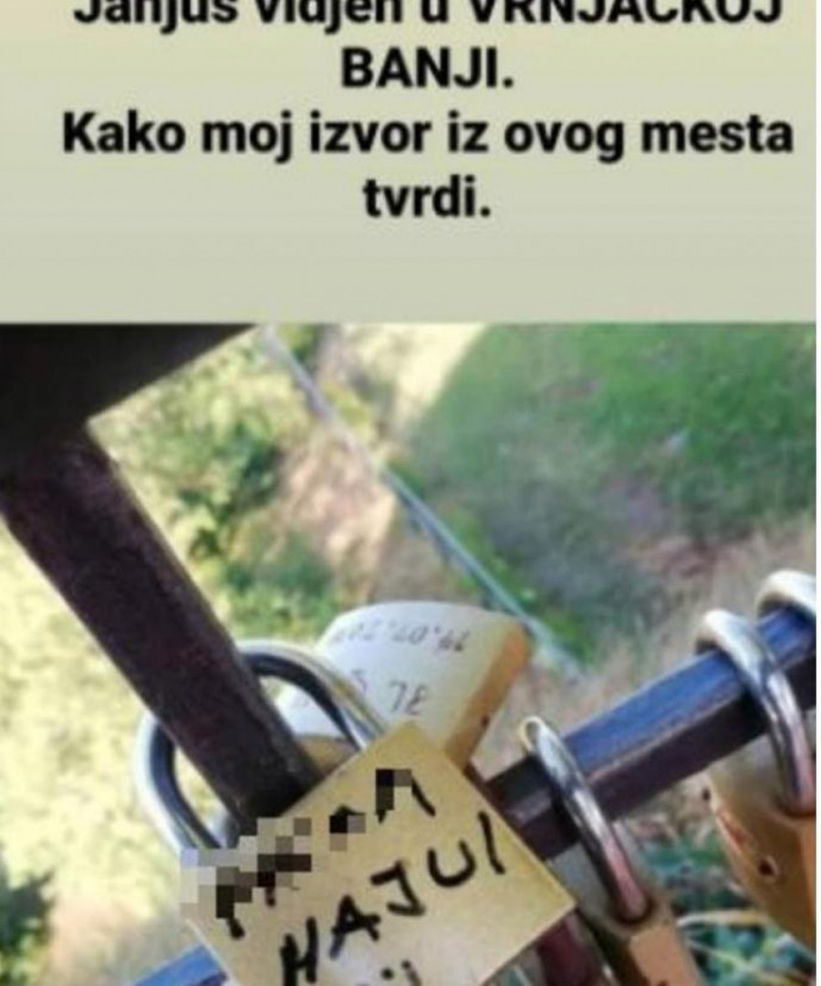- Janjuš viđen u Vrnjačkoj Banji, kako moj izvor iz ovog mesta tvrdi - napisao je Đedović, dok je na katancu pisalo "Pr*am Maju".