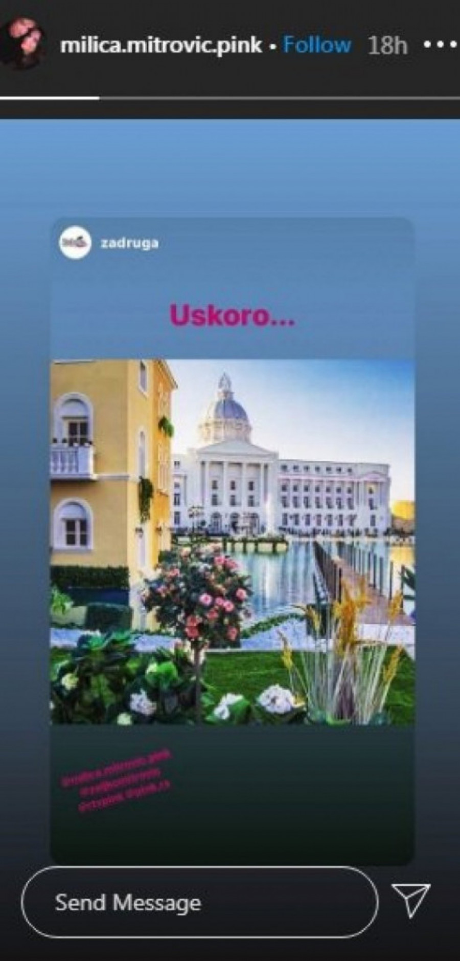 - Uskoro - napisala je ona i okačila sliku imanja "Zadruge", što znači da veoma uskoro šou ponovo počinje!