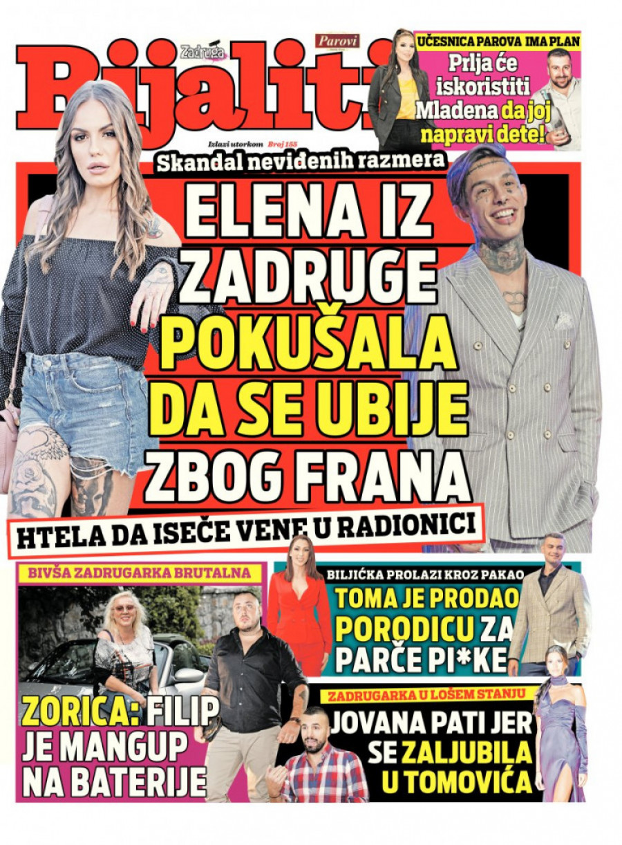 Utorak je dan kada uz "Srpski telegraf" dobijate dodatak "Rijaliti", koji se bavi najaktuelnijinm učesnicima "Zadruge" i "Parovi".