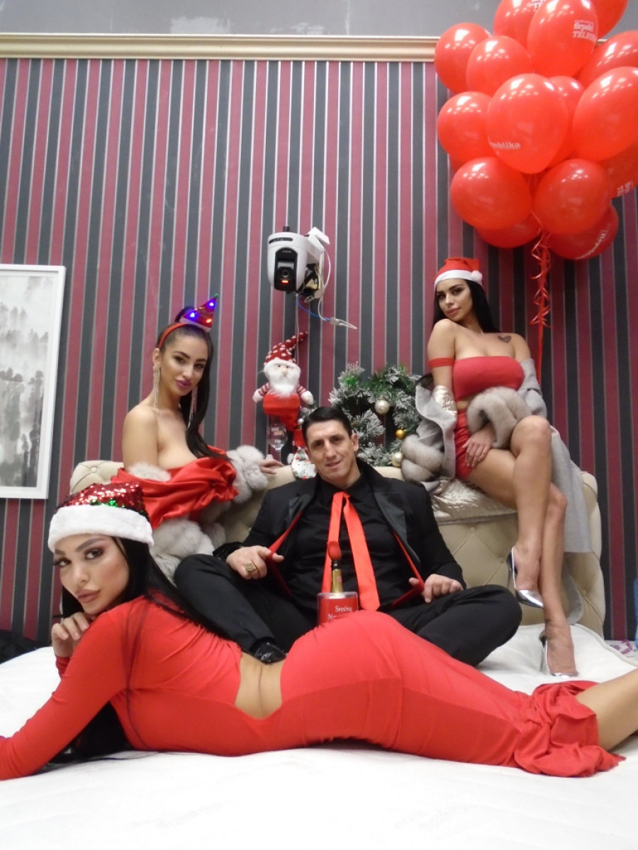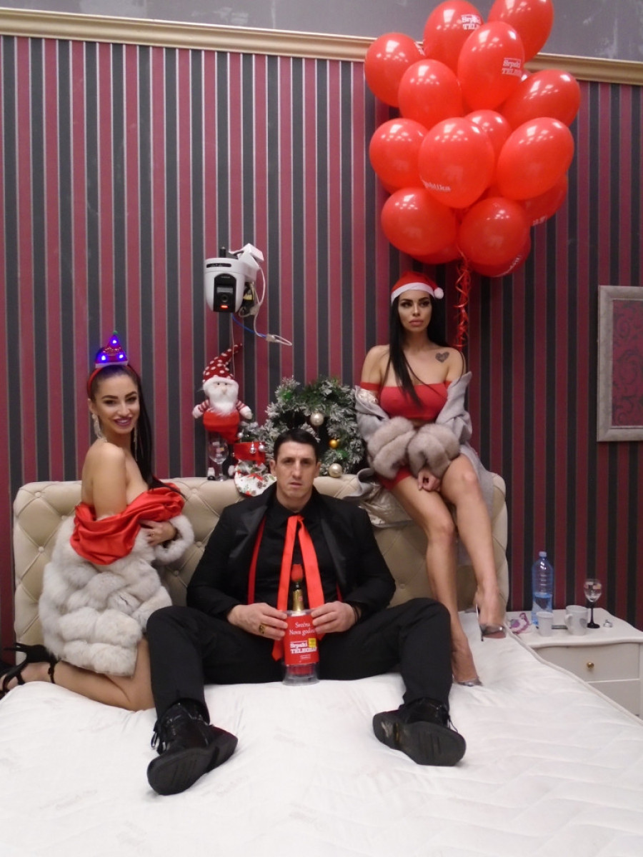 - Nadam se da Janjuš nikada neće videti ove slike i kako se njegova devojka ispred mene trti i uvija. Sve vreme dok smo se slikali pevušio sam: "Bolje mi je nego u ćuzi dok mi se Maja ovako guzi", plakali smo od smeha. Šalu na stranu, Maja je opasna riba, zgodna je do bola, mada ni ove druge nisu za bacanje. U novoj godini želi samo zdravlja, ostalo, kako kaže, već ima.