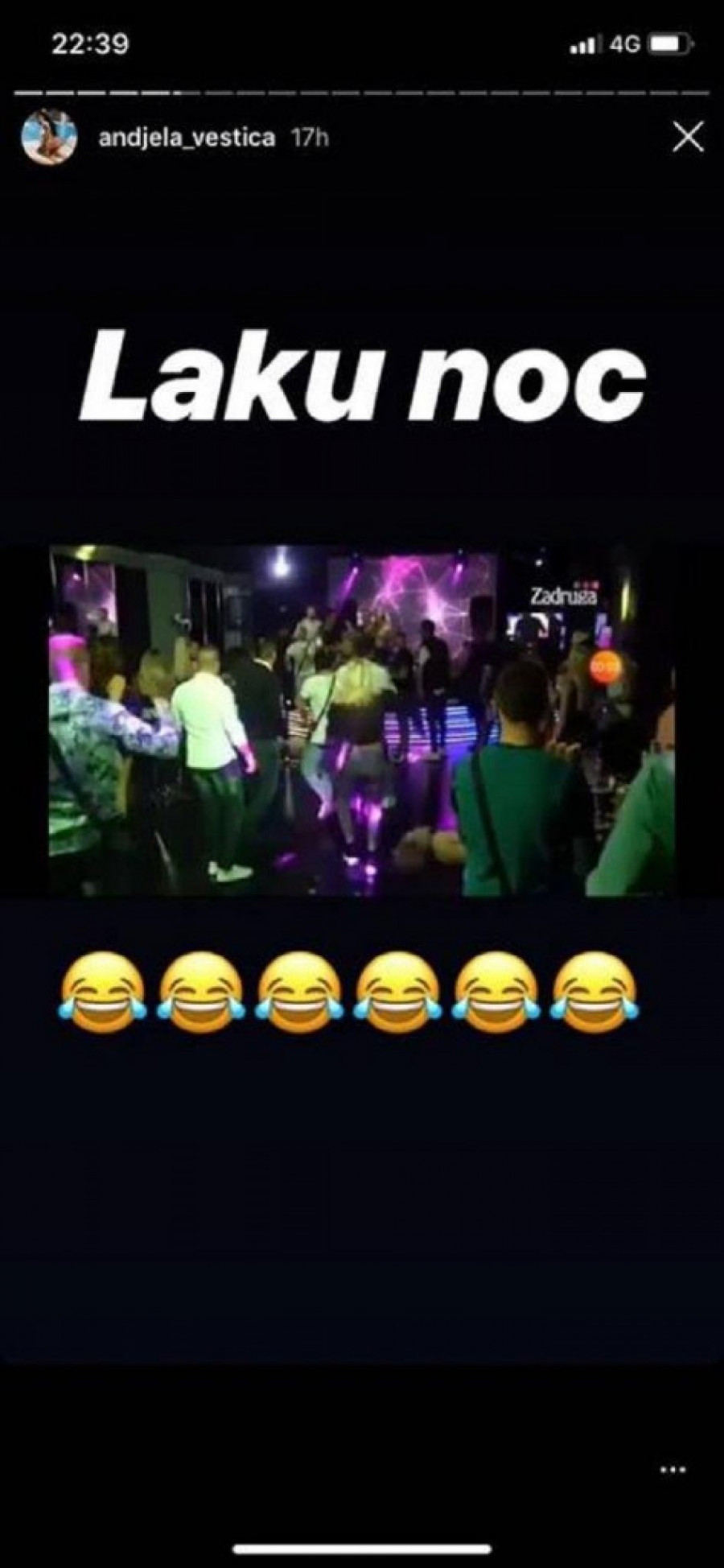 - Laku noć - dodala je ona ispod snimka, uz par emotikona koji se smeju.