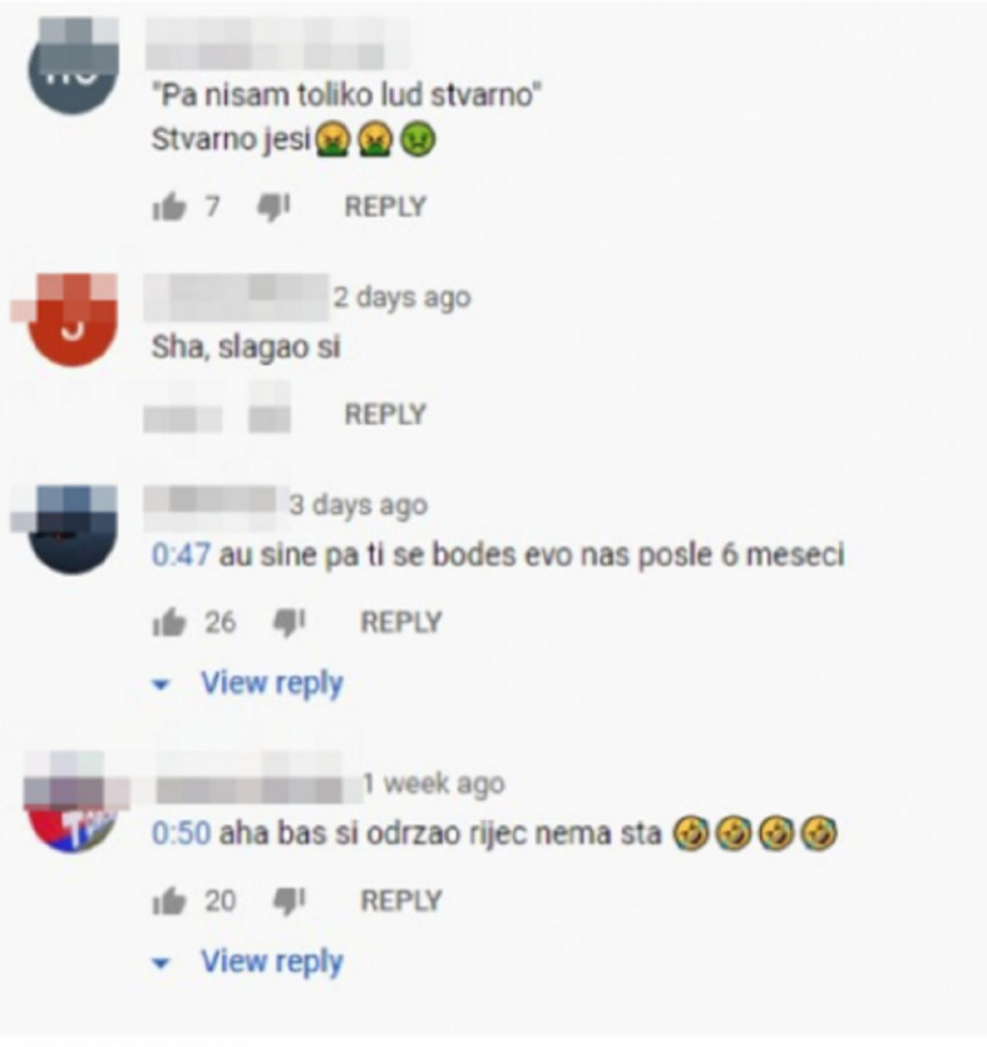 Sada se ispod ovog snimka ređaju komentari o Nenadu Aleksiću, pa mu se svi smeju zbog postupaka i reči koje je govorio na početku rijalitija.