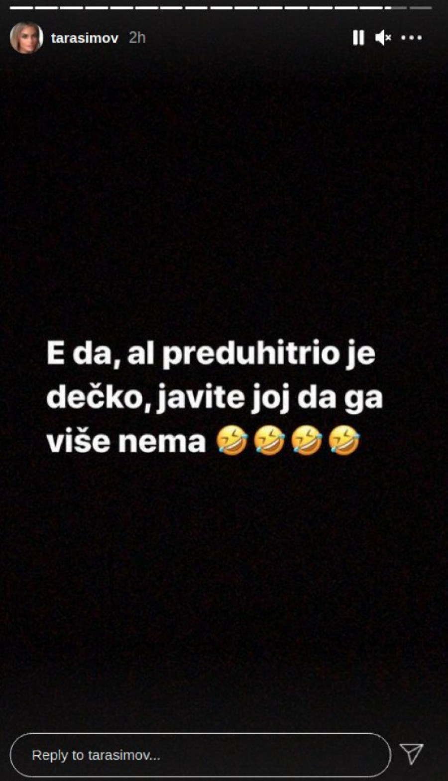 - E da, ali preduhitrio je dečko, javite joj da ga više nema - napisala je Simova.