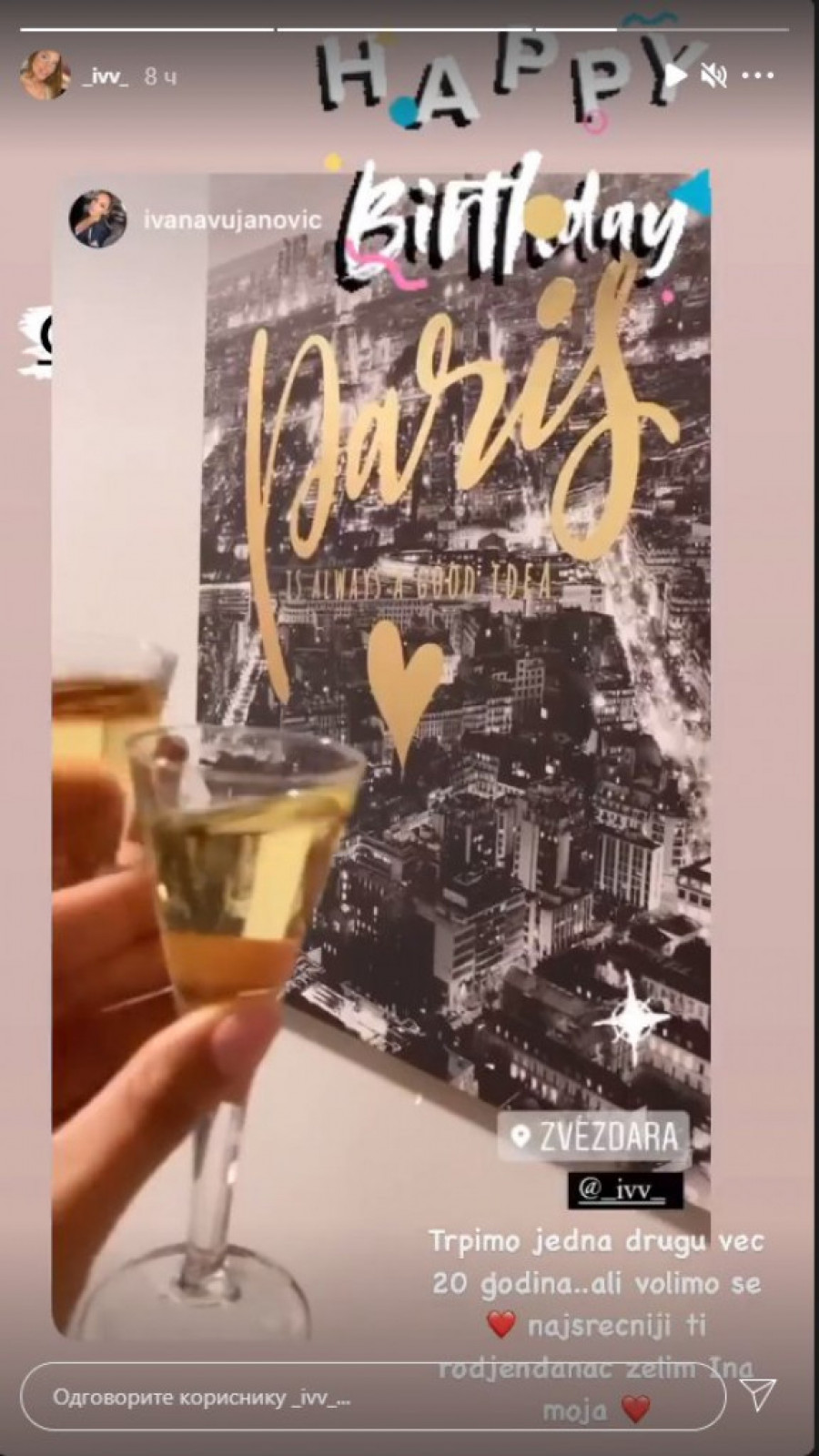 Naime, Ivana je na svom Instagram profilu objavila stori u kom je nazdravljala sa čašom šampanjca,a emotivnom porukom kojoj je čestitala rođendan najboljoj drugarici raznežila je sve.