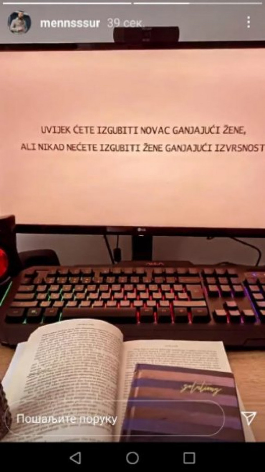 Foto: instagram.com/mennsssur-Uvek ćete izgubiti novac ganjajući žene, ali nikad nećete izgubiti žene ganjajući izvrsnost - napisao je Mensur.