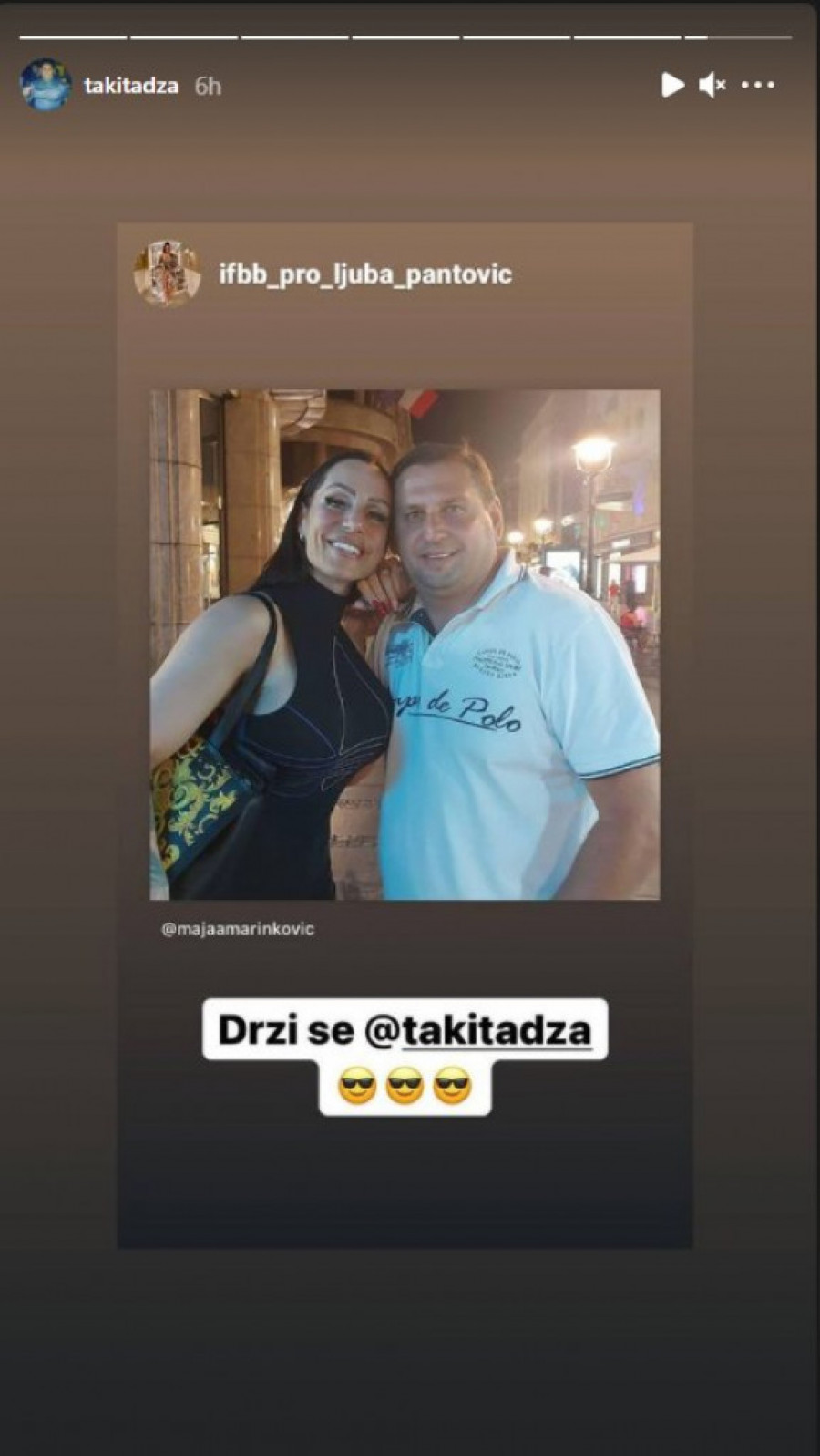 Dok se Maja pati u vezi sa Janjušem, a sada i iza rešetaka, njen otac Taki Marinković uživa u lepom društvu. Naime, na Instagramu je isplavala fotografija Takija sa bivšom zadrugarkom Ljubom Pantović, koja mu je uputila i reči podrške.