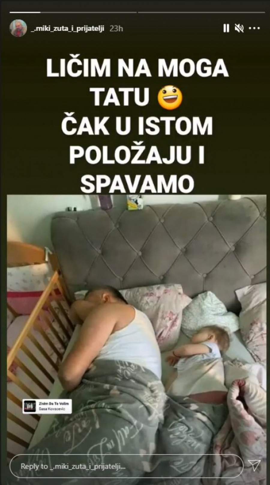 Na Instagramu se pojavila Mikijeva fotografija sa ćerkom Dunjom dok spavaju, a fanovi su bili oduševljeni, budući da su spavali u istoj pozi, pa su se našalili na taj račun.
