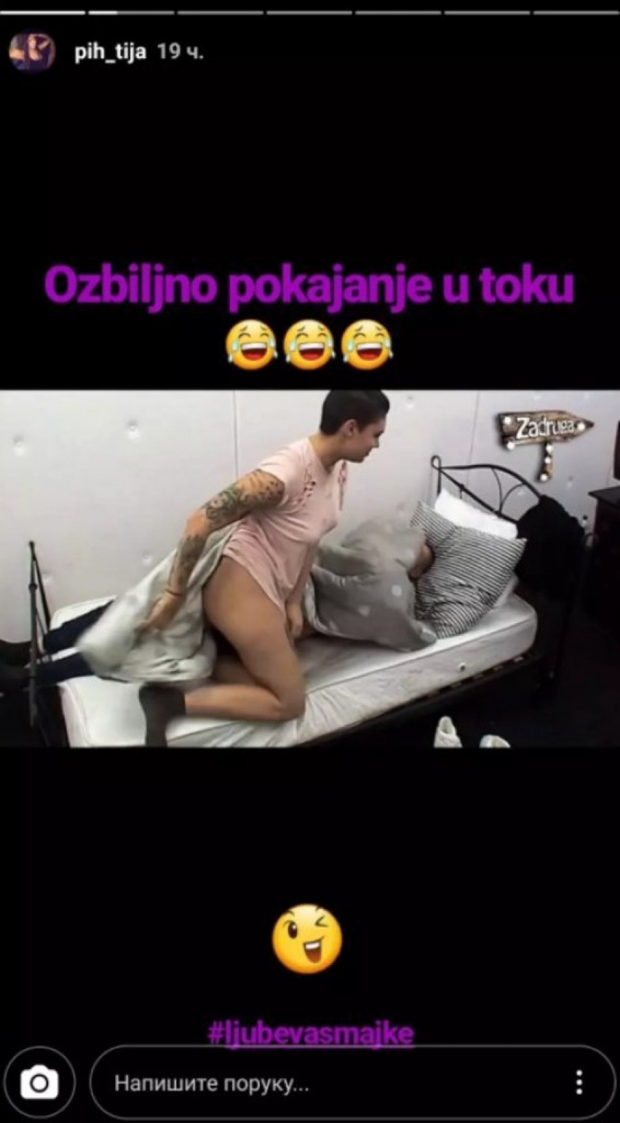 Foto: instagram.com/pih_tijaPored druge se našalila i na svoj i na njegov račun, te je napisala "ozbiljno pokajanje u toku, ljube vas majke".