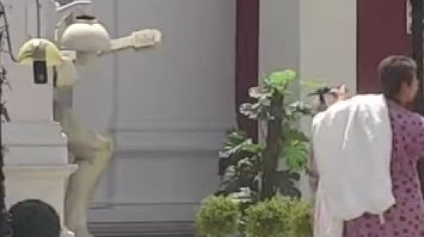 Foto: youtube.com/Zadruga OfficialKulićeva je oduševljeno pokazivala zadrugarima šta je dobila, a onda je prislanjala venčanicu uz telo da vidi kako će joj stajati.