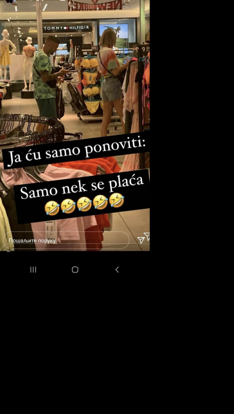 Nenad Aleksić Ša, Marko Đedović i Tara Simov uputilu su se zajedno u šoping, a koko Đedović kači storije dok Nenad gleda u telefon, možemo da pretpostavimo da je inicijator za to bila Tara. Bivša zadrugarka šeta prodavnicom dok je njen ljubavnik Nenad prati u stopu dok u ruci drži veliki broj kesa.