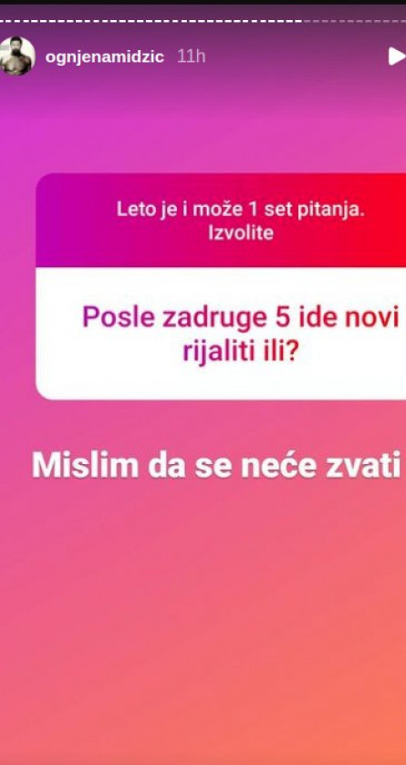 - Posle Zadruge 5 ide novi rijaliti ili? - glasilo je pitanje, na šta je Ognjen kratko odgovorio: