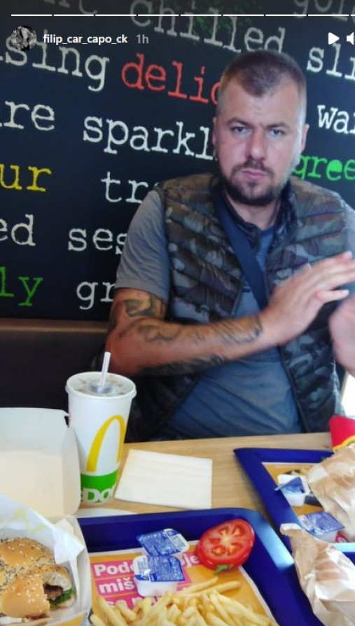 Foto: Instagram.comFilip je na svom Instagramu objavio stori na kom je pokazao da je izveo Janjuša na ručak u restoran brze hrane i tom priliko ovekovečio kako je sve izgledalo.