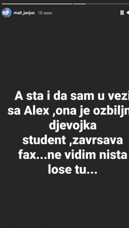 - A šta i da sam u vezi sa Aleks, ona je ozbiljna devojka, student, završava faks, ne vidim ništa loše tu - dodao je Janjuš.