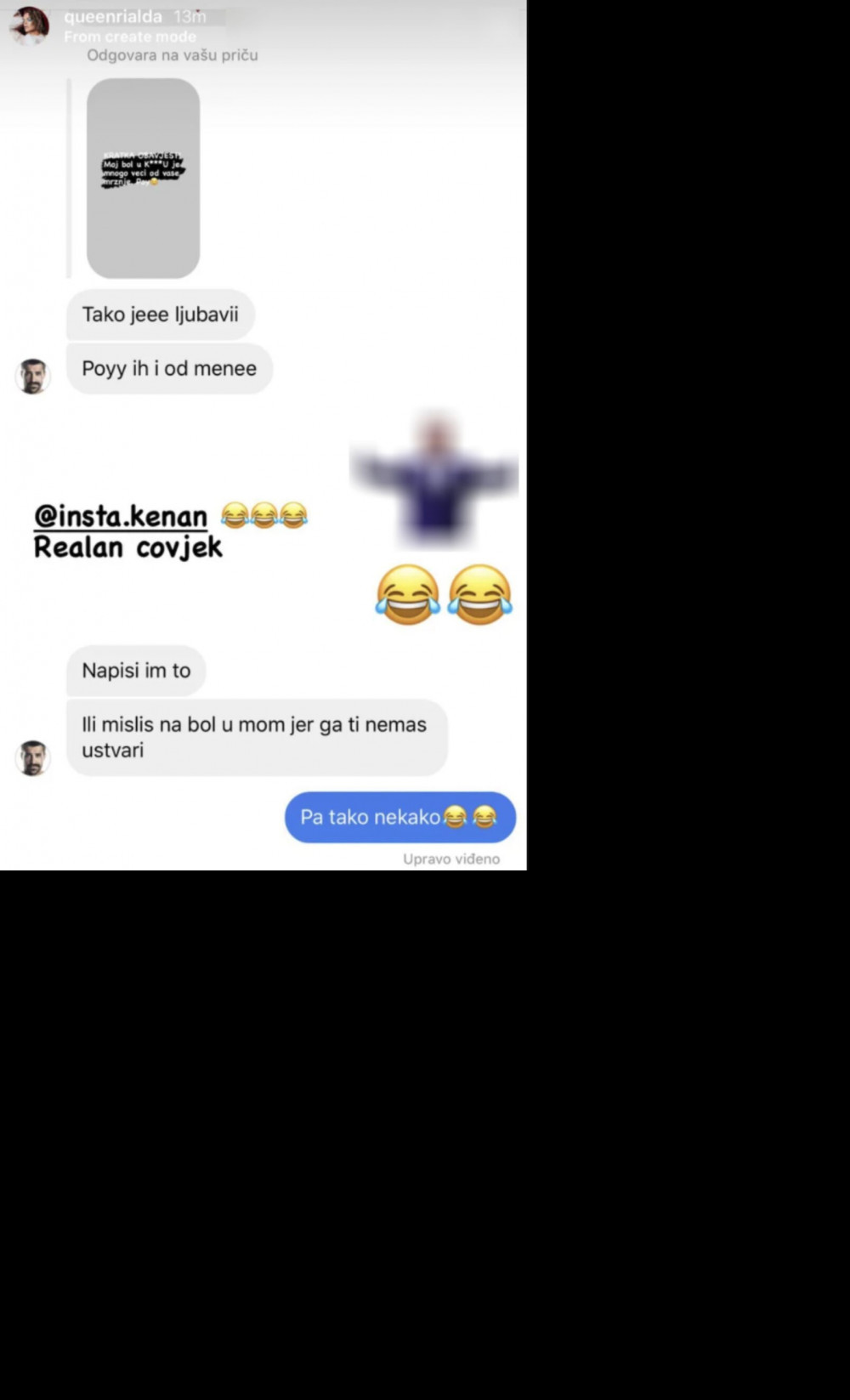 "Tako je ljubavi, pozdrav i od mene. Ili misliš na bol u mom jer ga ti nemaš", napsao je Kenan, a rijalda je dodala: