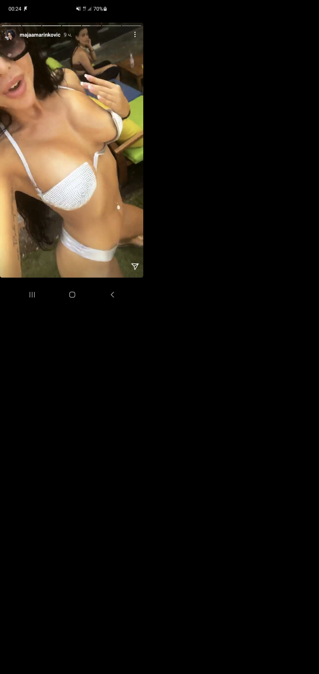 Foto: Printskrin/RTV PINKBivšoj zadrugarki Maji Marinković su na Crnogorskom primorju izgleda počeli da se tope silikoni. Da li od velike vrućine ili što su zreli za remont, ali leve dojke skoro da i nema. Deluje kao da se izduvala poput gume bicikla koja legne od prevelikog opterećenja ili probijene lopte s kojom su se deca igrala.