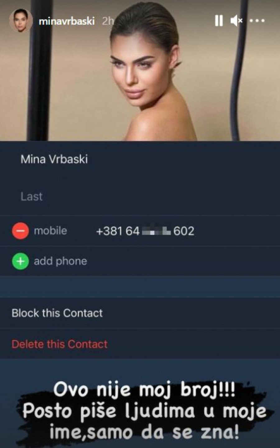 - Ovo nije moj broj! Pošto piše ljudima u moje ime, samo da se zna – napisala je Mina.