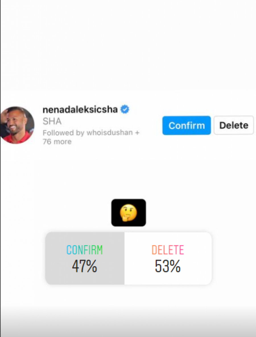 Nenad joj je poslao zahtev za praćenje na pomenutoj društvenoj mreži, a kako nije znala šta da radi zadrugarka je pitala svoje pratioce: